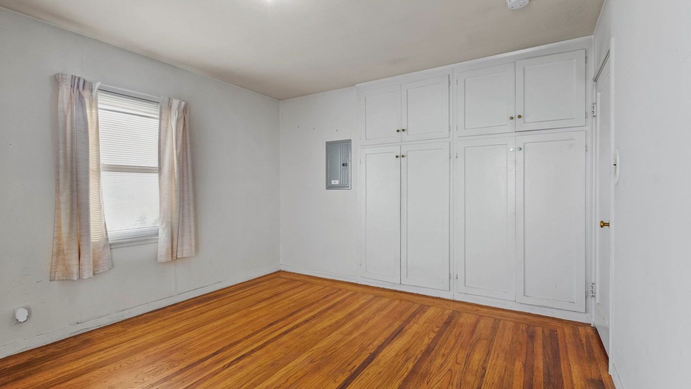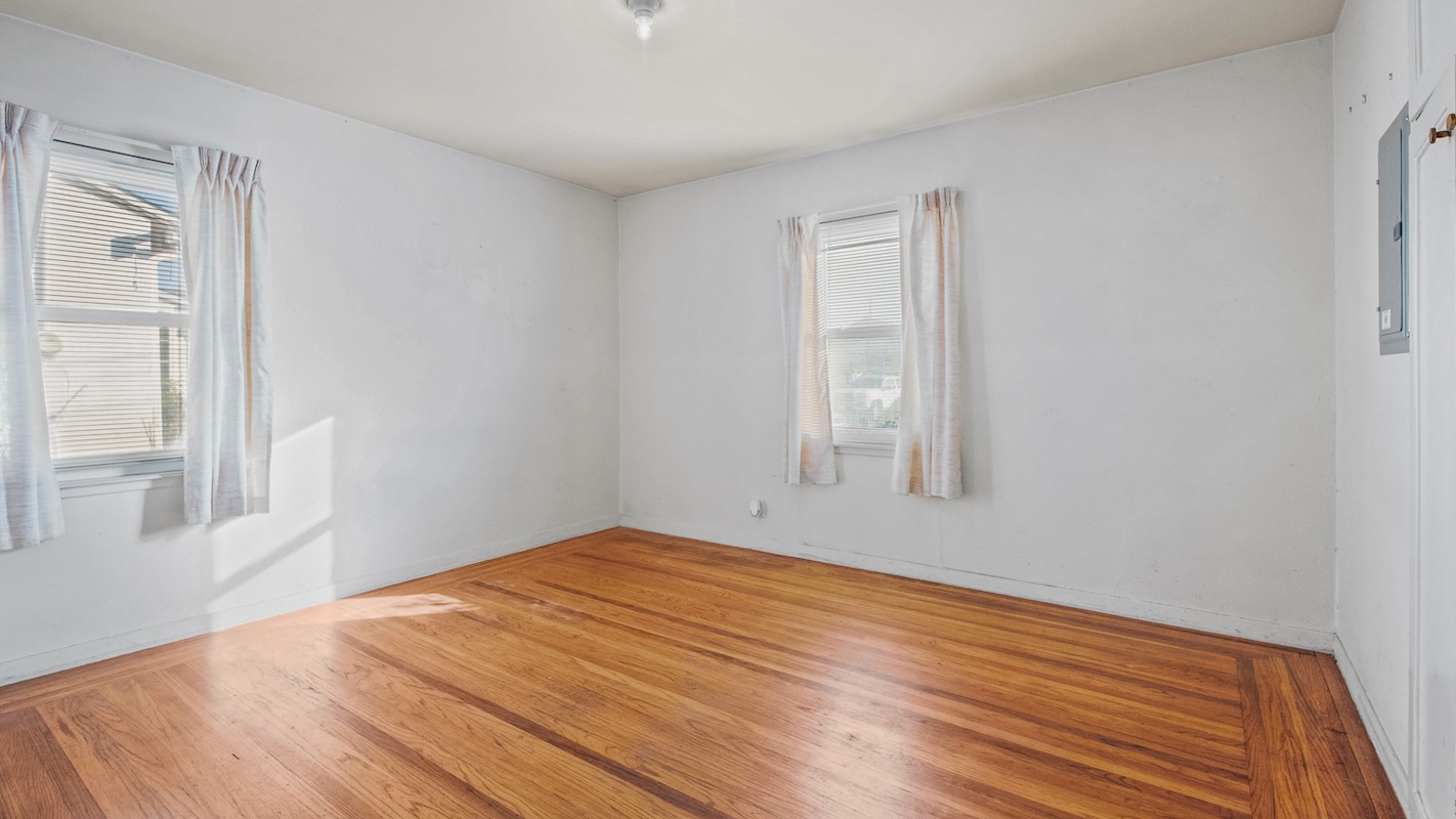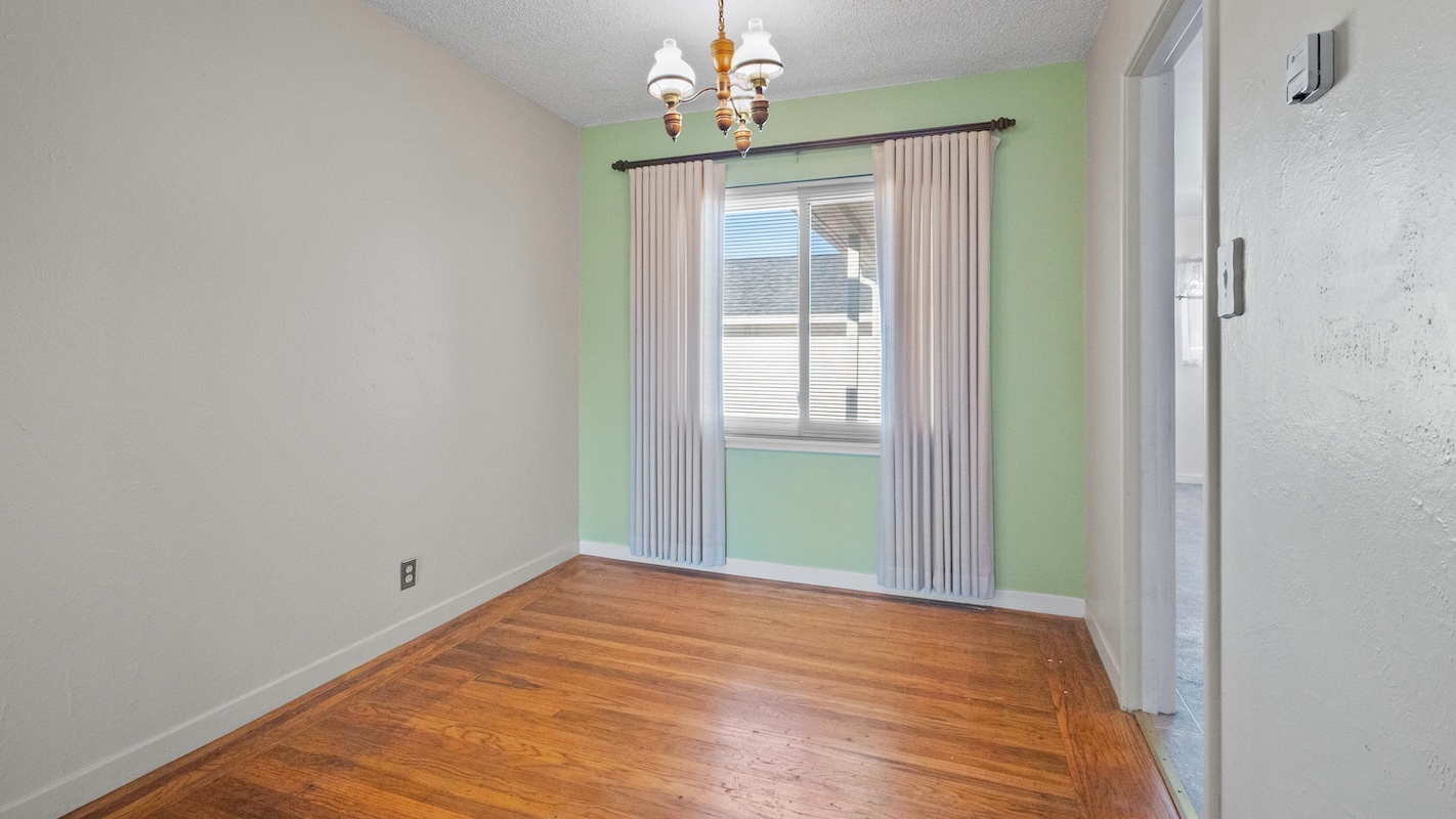 Original hardwood floors complement the inviting living and dining areas, while the expanded kitchen provides added functionality with an indoor laundry space—an uncommon bonus in homes of this era. Fresh exterior paint adds to the home’s appeal, creating a crisp, clean presence from the curb.